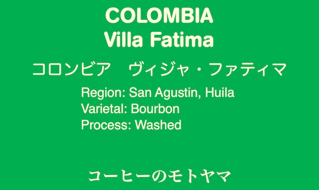【コロンビア】 Villa Fatima ヴィジャ・ファティマ ☆中煎り ☆深煎り 200g