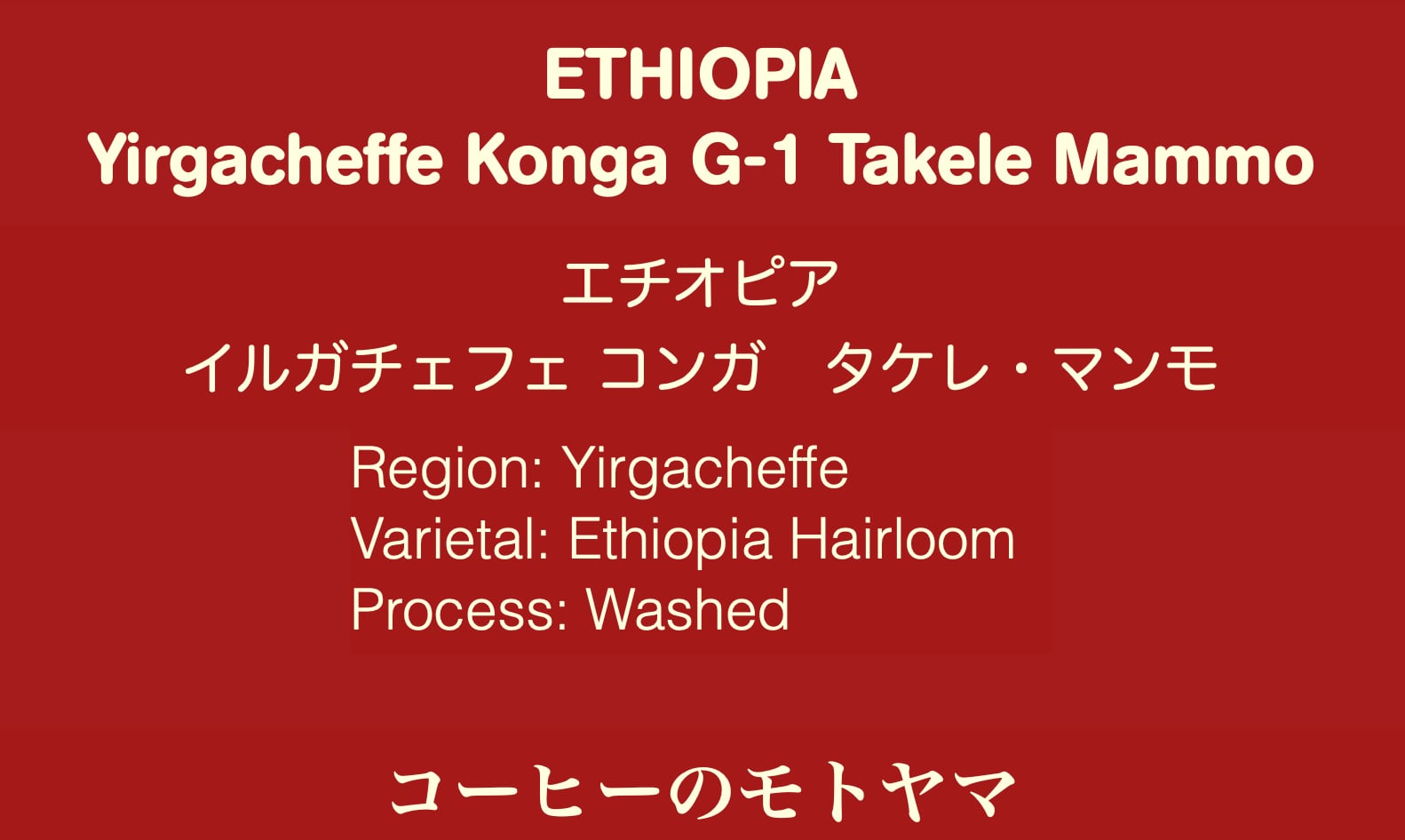 当ロットは、イルガチェフェ・コンガ地区のコーヒー生産者、タケレ・マンモ氏とその家族の農園で生産されたウォッシュドG-1のコーヒーです。タケレ氏は、コンガ・トレーディングという、イルガチェフェ、コンガ地区の単一生産者のコーヒーを取り扱う輸出業者でもあり、自身も90年の歴史をもつコーヒー農園の生産者でもあります。当商品は、タケレ氏の農園のコーヒーだけで作った単一生産者ロットになります。
