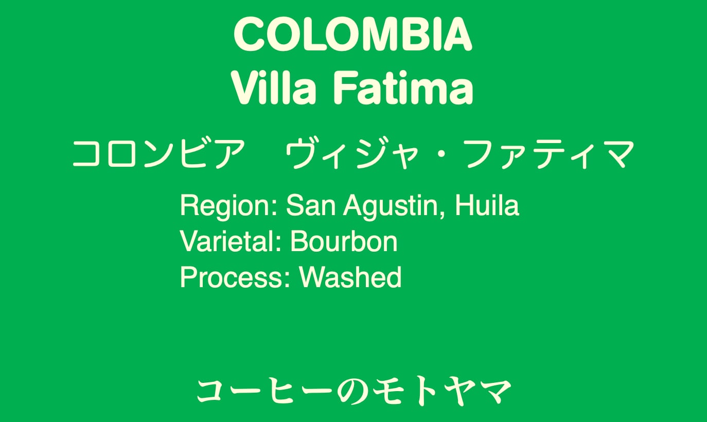 ウイラ地方ではコーヒー生産者の多くが7エーカーに満たない小規模農園で、家族総出で丹念に育てられています。これこそがウイラ産コーヒーが素晴らしいといわれる所以です。ヴィジャ・ファティマはサンアングスチンにある小さな町で、マグダレーナ川の西岸に位置します。この周辺の町(ヴィジャ・ファティマ、ラ・パルマ、エル・カルメン、クイチャナ、オバンド)では生産者の多くが2~3ヘクタールの零細農家ですが、丹精込めて高品質のコーヒーを生産しています。ウイラ産コーヒーはバランスのとれたマイルドなボディーと酸、そしてやわらかなフローラルの香り、なりよりもそのクリーンさが特徴です。